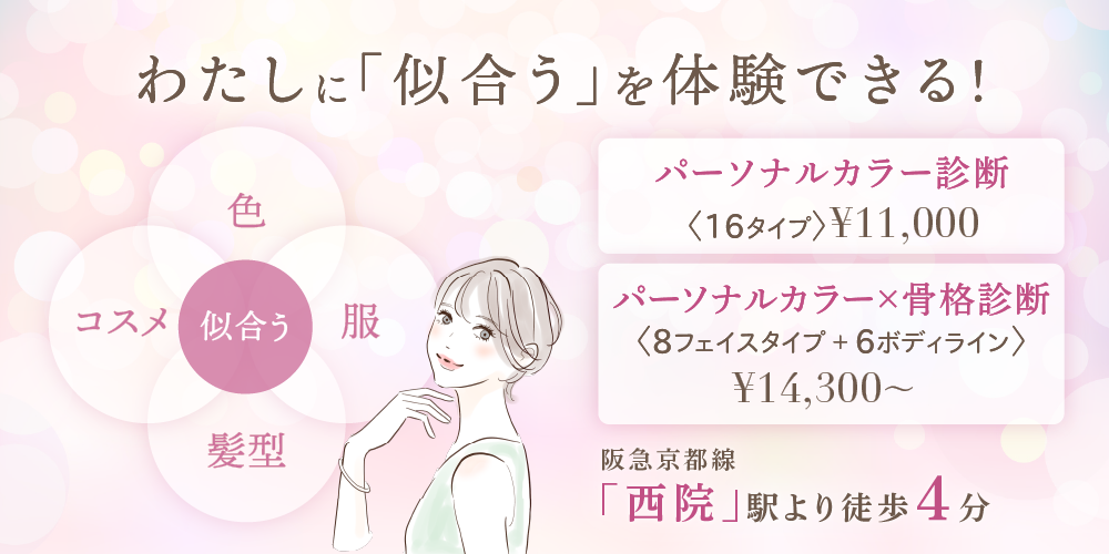 「カレイドスコープ」は阪急京都線「西院」駅から徒歩4分のパーソナルカラー診断サロンです。
