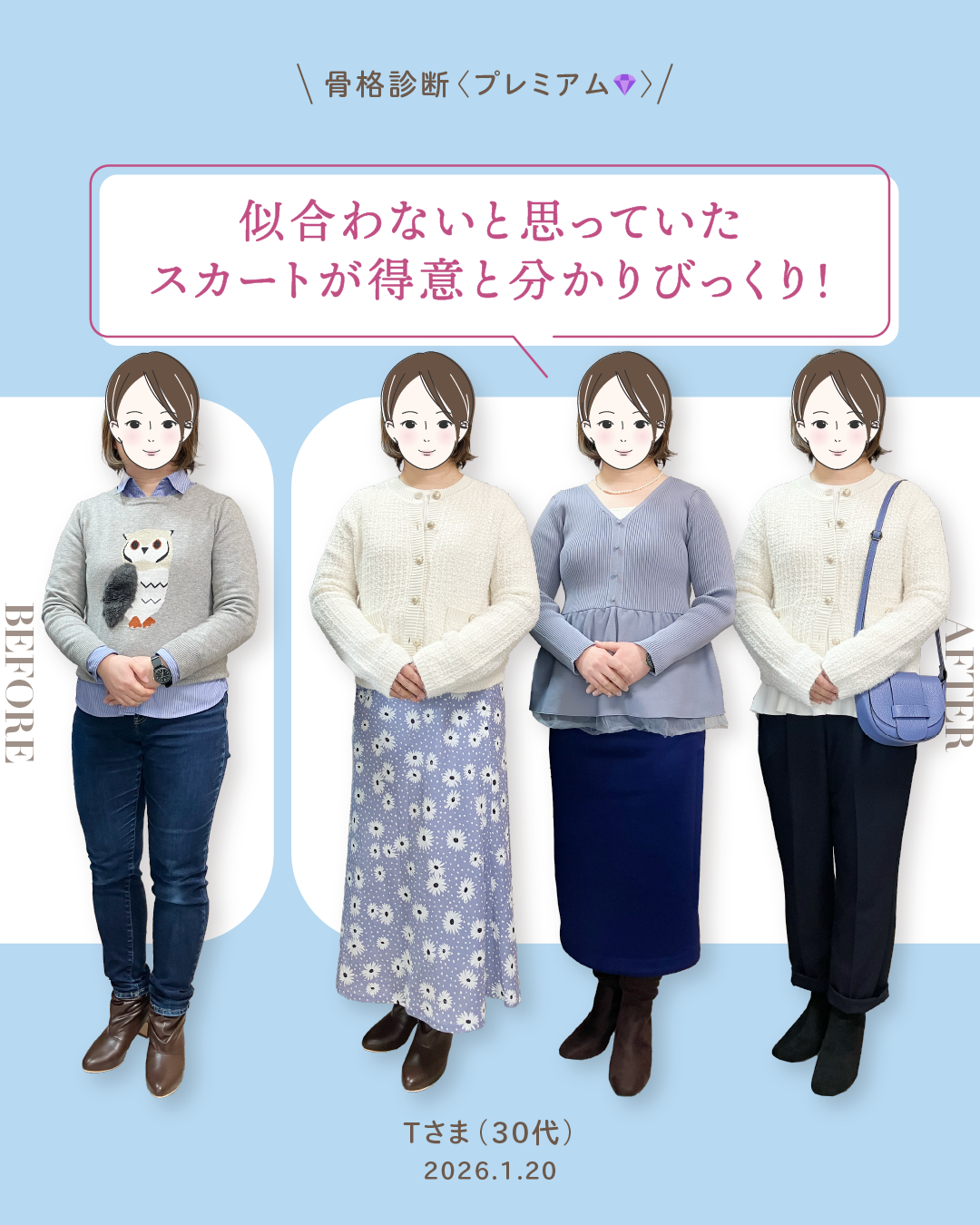 次回は、Tさまの骨格診断レポートをお届けします。お楽しみに!