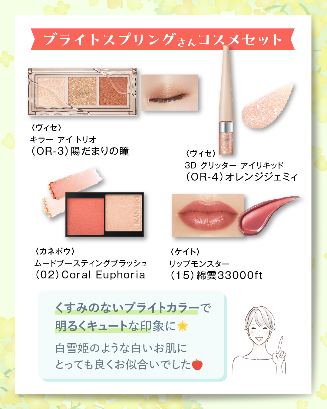 ・明るいブライトスプリングカラー → 健康的でキュートな印象