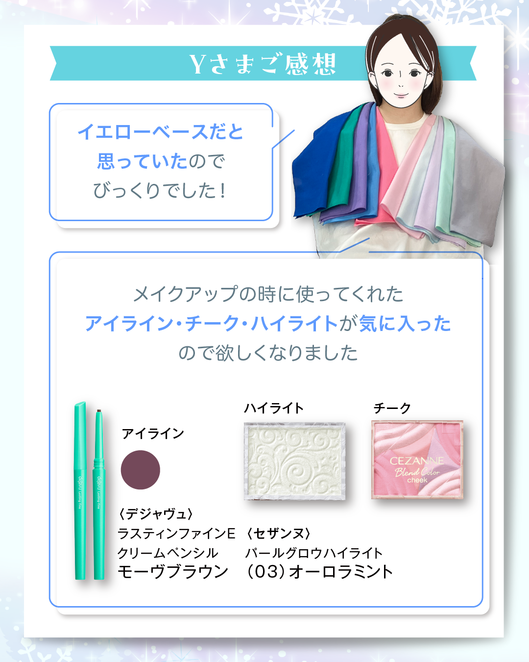 Yさまならではのクリアな色と透明感メイク、ぜひ楽しんでくださいね💐