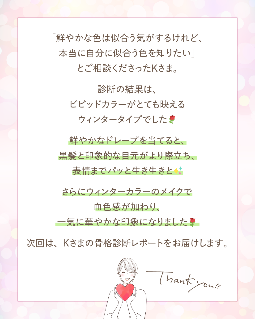 次回は、Kさまの“装い”の変化をお届けします🦋