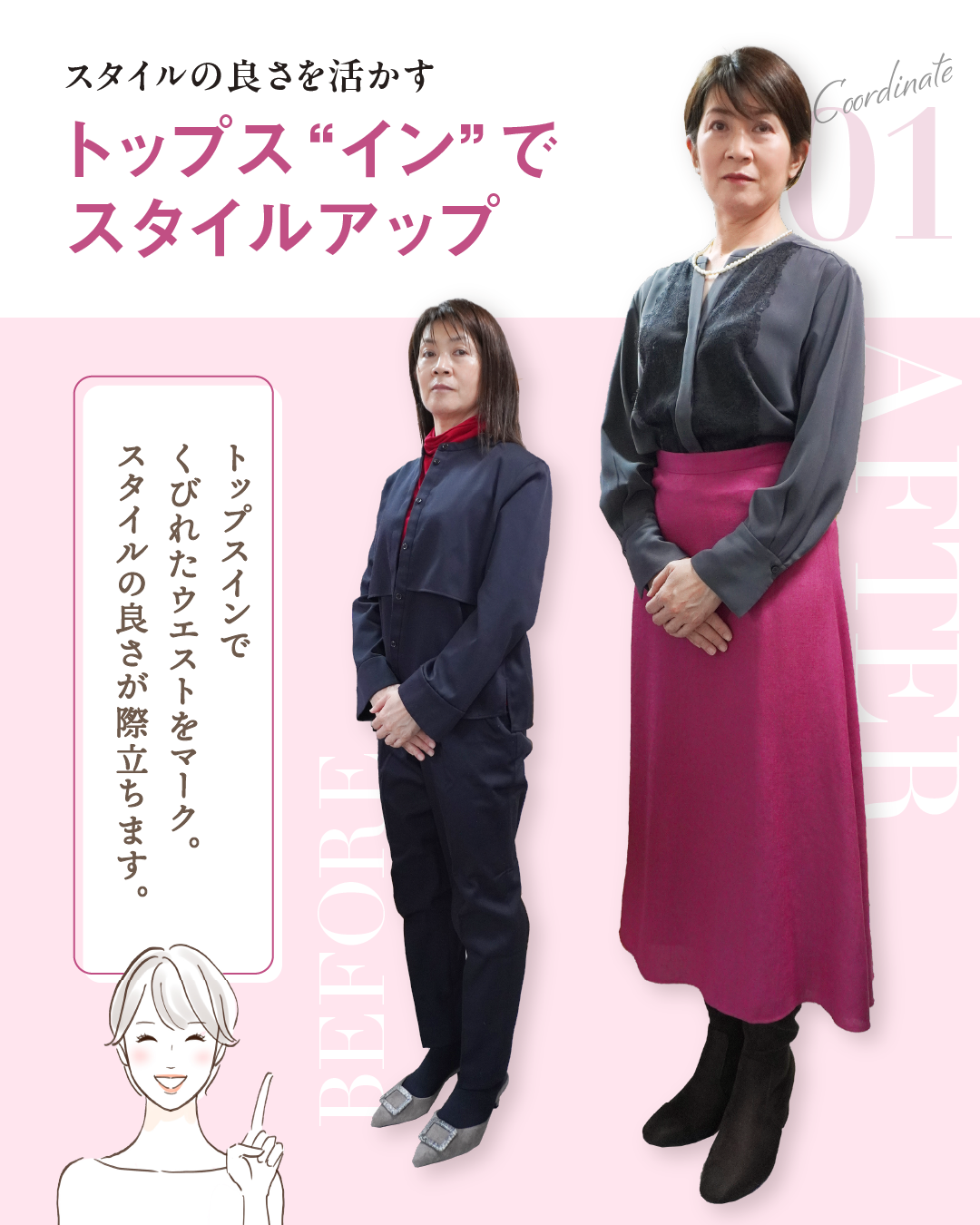 ・ウエストをマークしてスタイルアップ