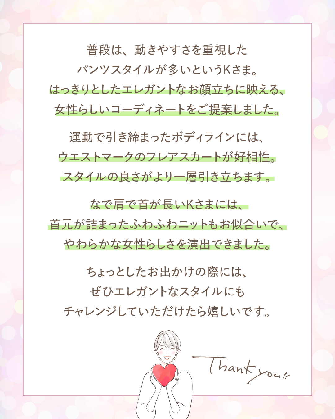 前回に続き、Kさまの骨格診断レポートをお届けします😊