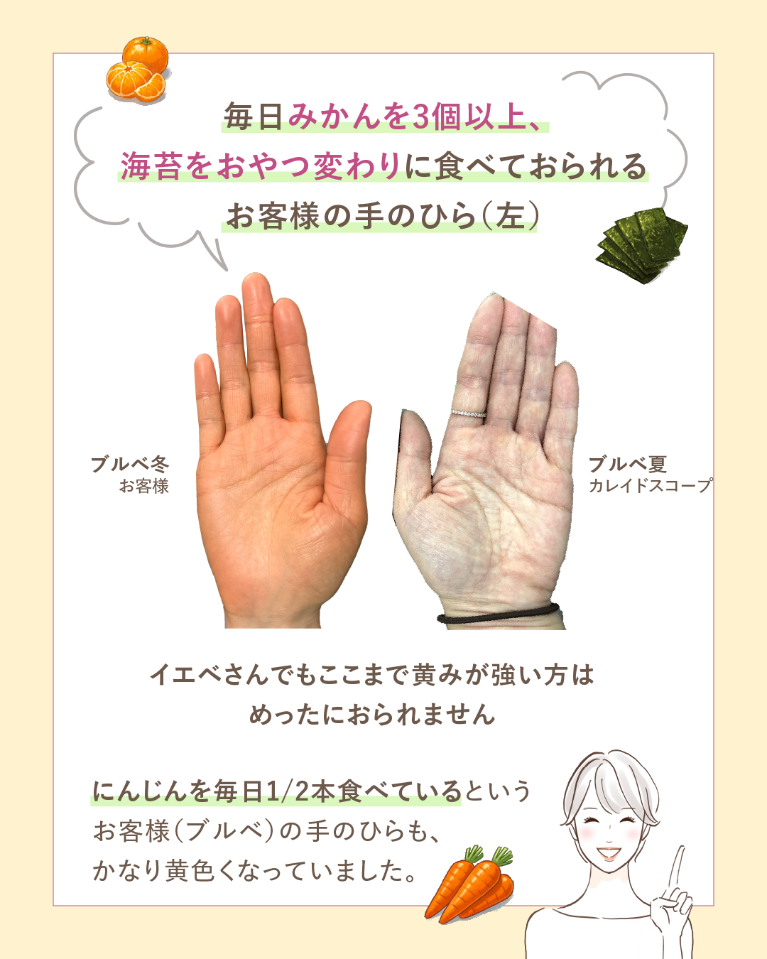 ✔ サロンで診断する場合は「みかんを食べすぎています」と一言伝える