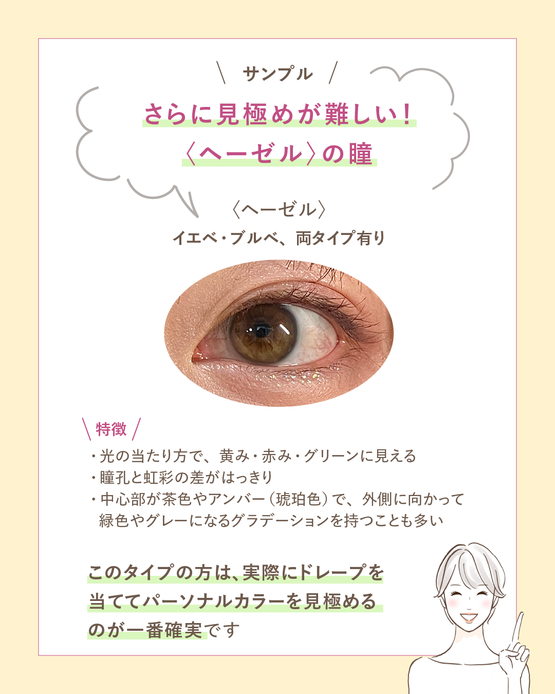 瞳の色はパーソナルカラーを判断する大切な要素のひとつですが、中にはとても見極めが難しいタイプが存在します。