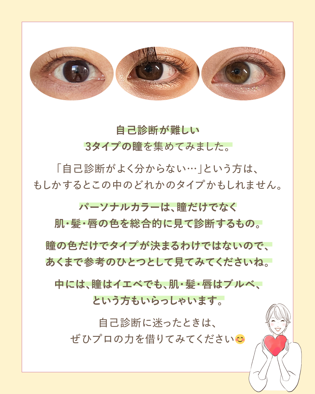 今回は自己診断が難しい「3タイプの瞳」をご紹介します。