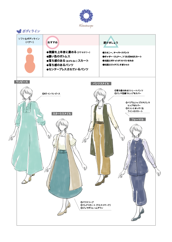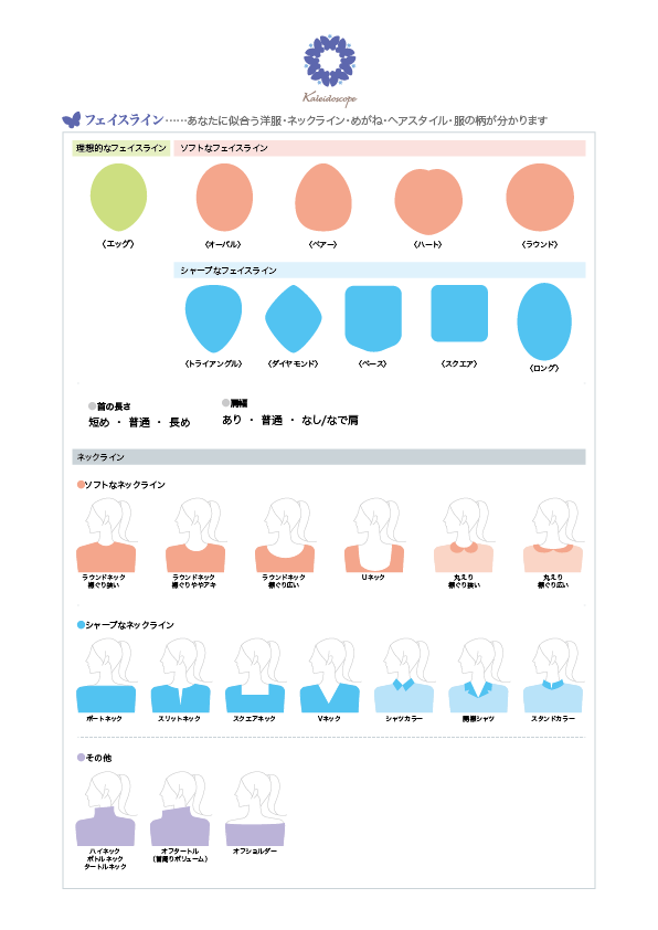 カレイドスコープの骨格診断では、顔タイプとボディラインを同時に診断します。