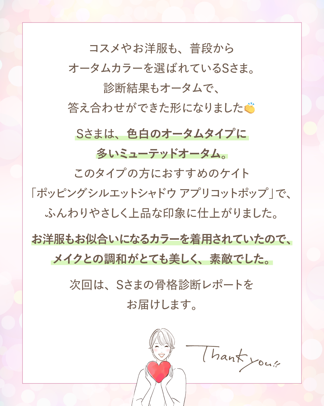 次回は、Sさまの骨格診断レポートをお届けします🌸