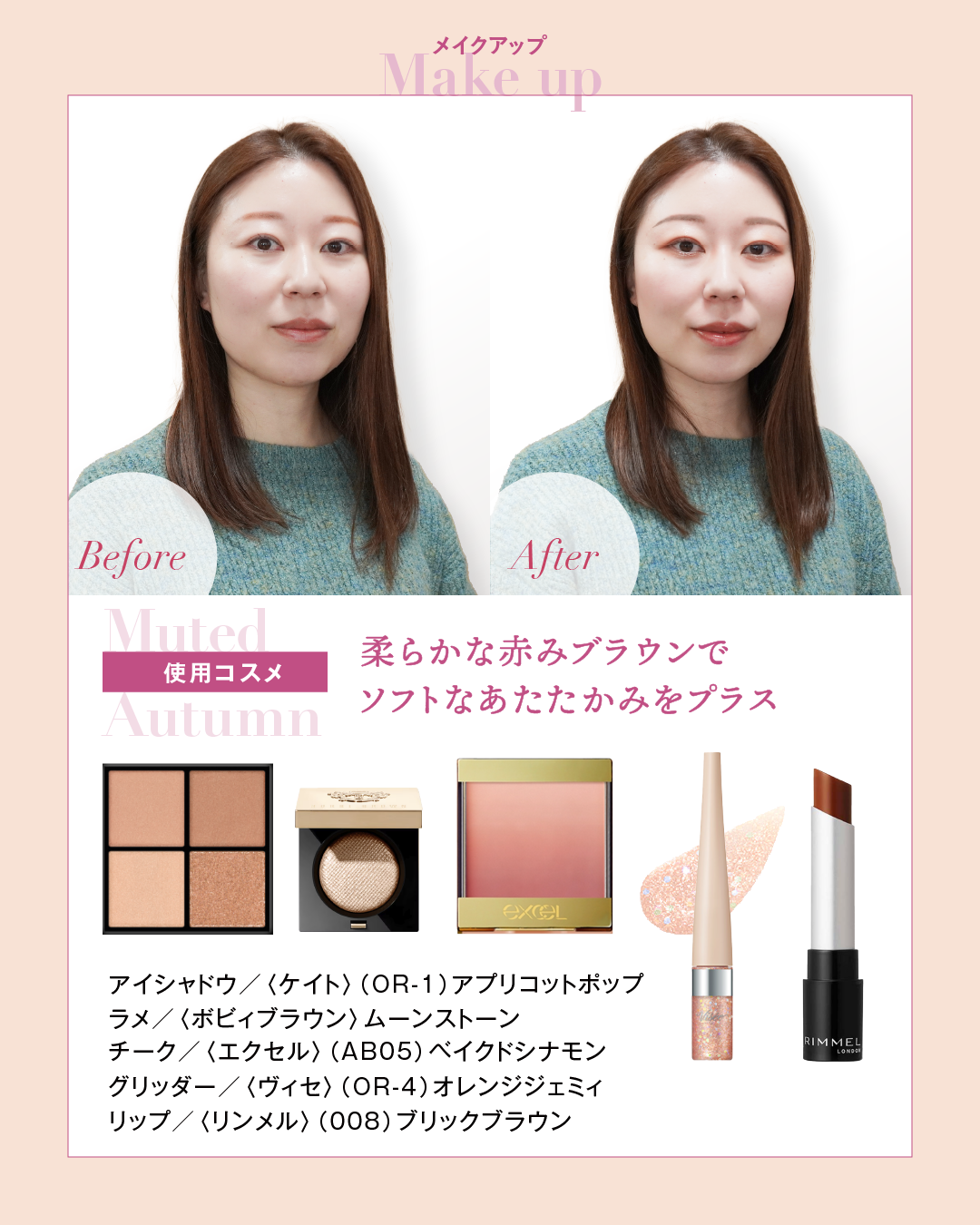 普段からイエベ秋カラーのコスメとお洋服を選ばれているSさま🍁