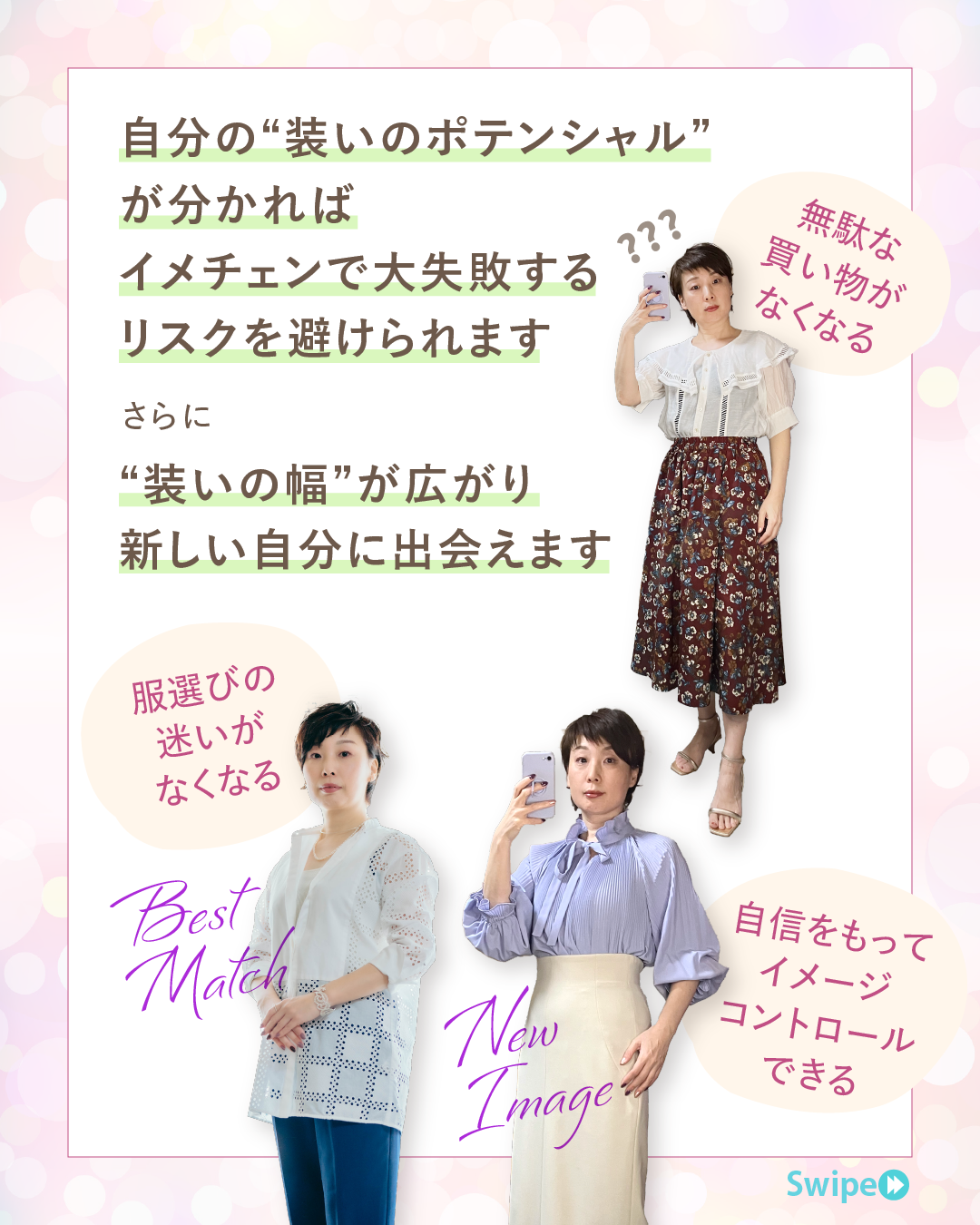 まずは自分の強みを知ることで、無駄な買い物を減らし、自信を持ってイメージをコントロールできるようになります。
