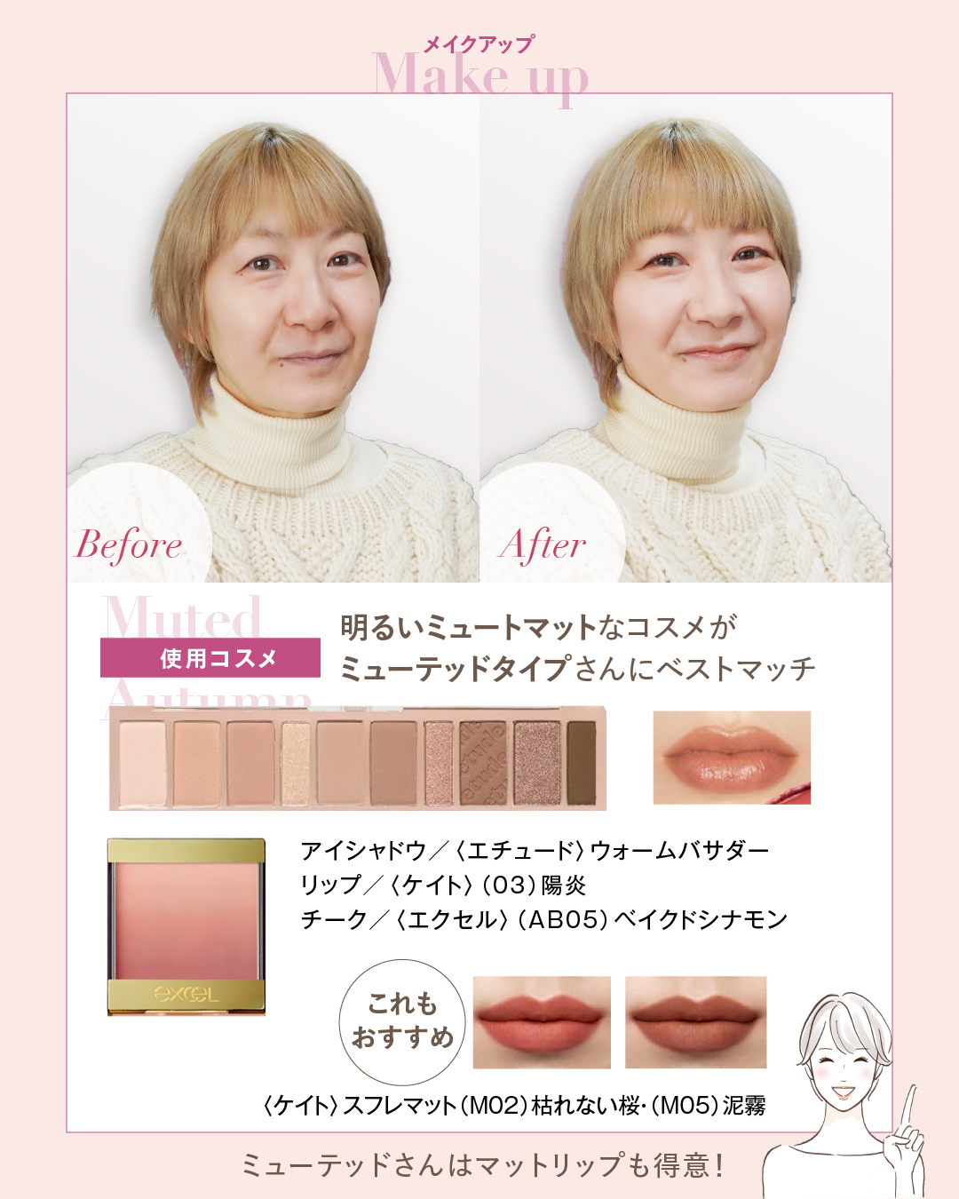 ミューテッドオータムに似合う、やさしげマットメイク🍑