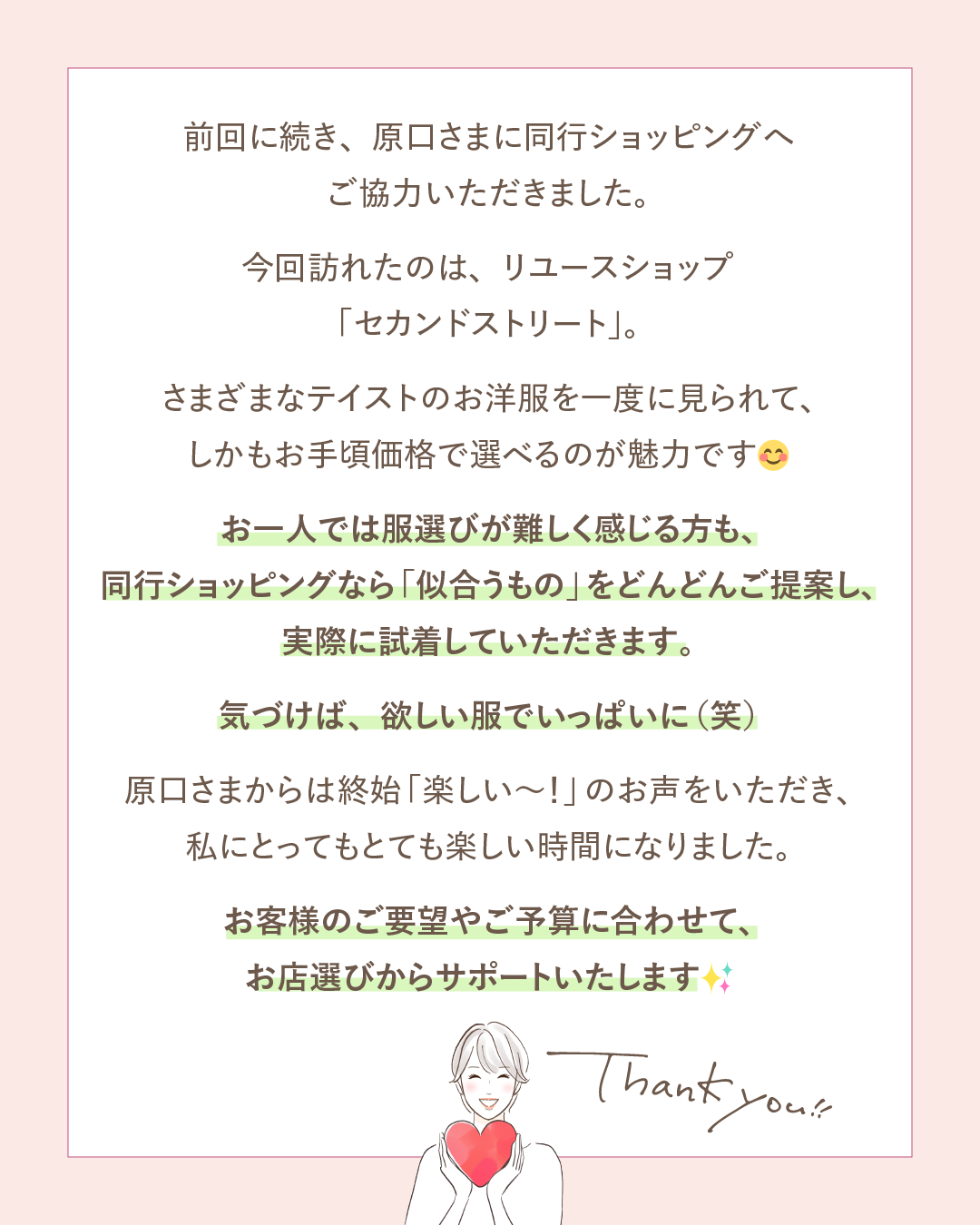 お一人では服選びが難しく感じる方も、同行ショッピングなら