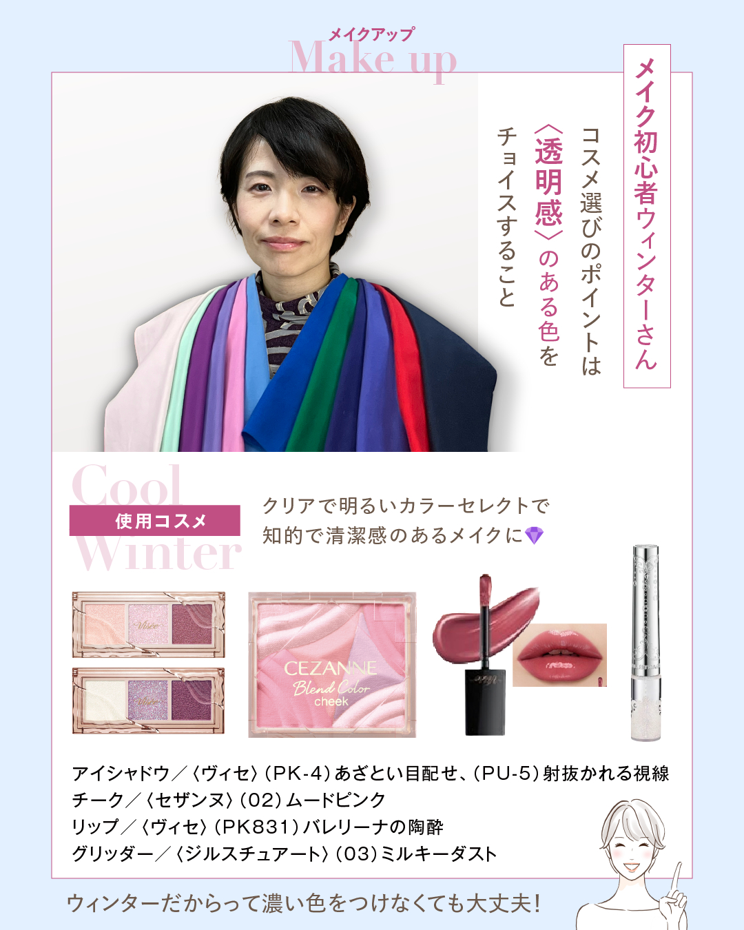 ウィンタータイプだからといって、必ずしも濃い色でメイクする必要はありません。