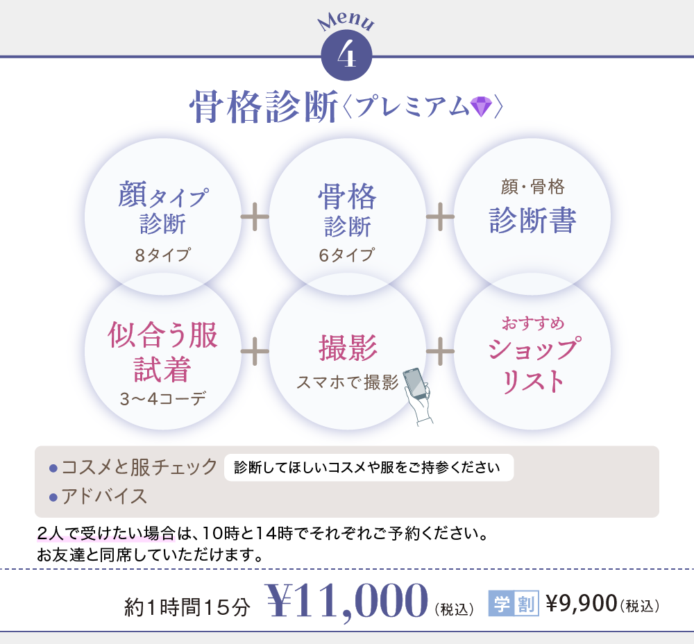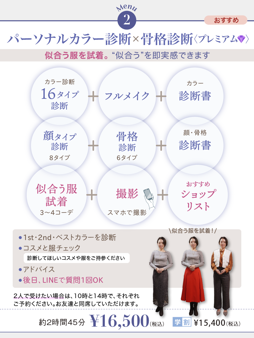 ●パーソナルカラー×骨格診断〈プレミアム〉(16,500円)