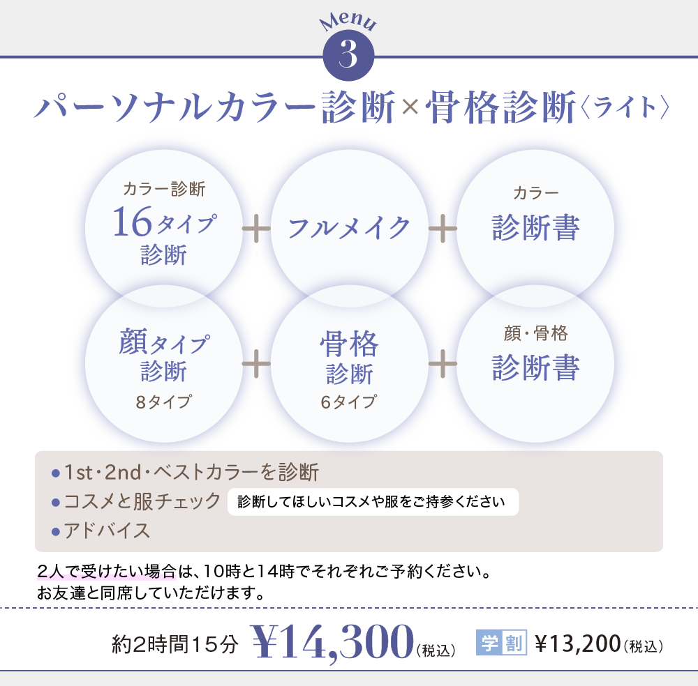 ●パーソナルカラー×骨格診断〈ライト〉(14,300円)