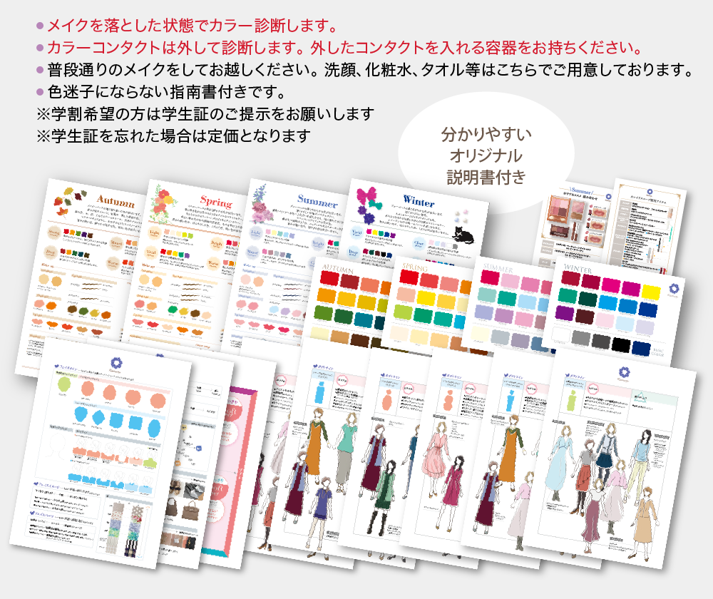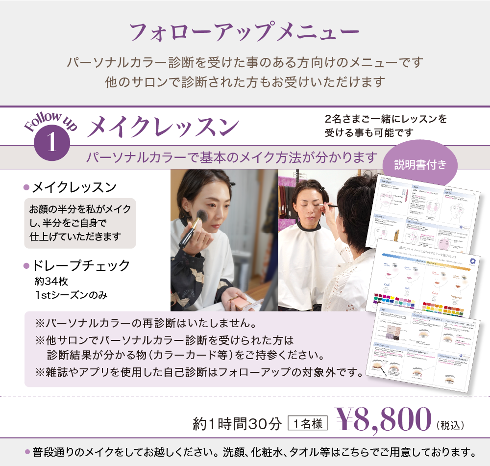 ●メイクレッスン(8,800円) 全ての診断とレッスンに診断書や使用コスメカード等が付きます